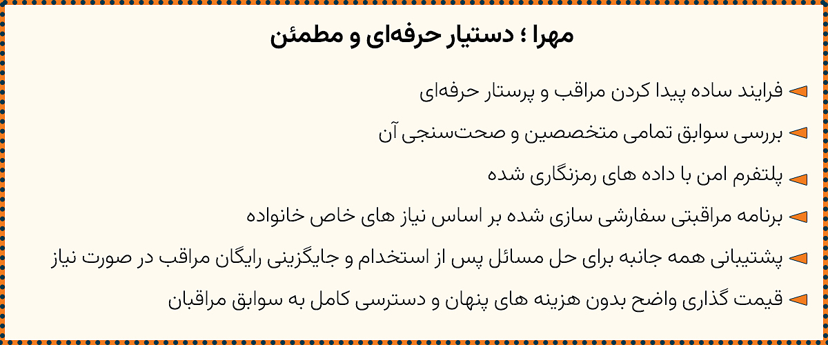 در مهرا شما میتوانید پروفایل پرستاران را مشاهده کنید و بر اساس نیاز خود بهترین گزینه را انتخاب کنید.